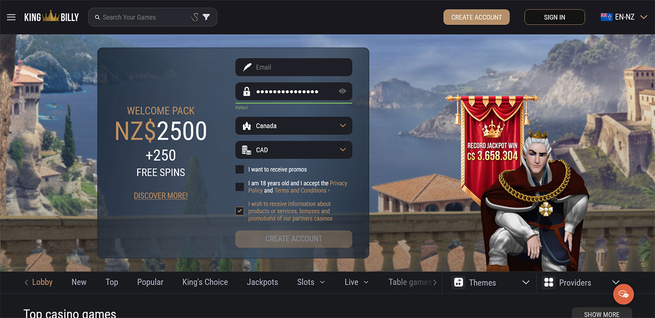 A small guide with tips on how to start playing at King Billy Casino
